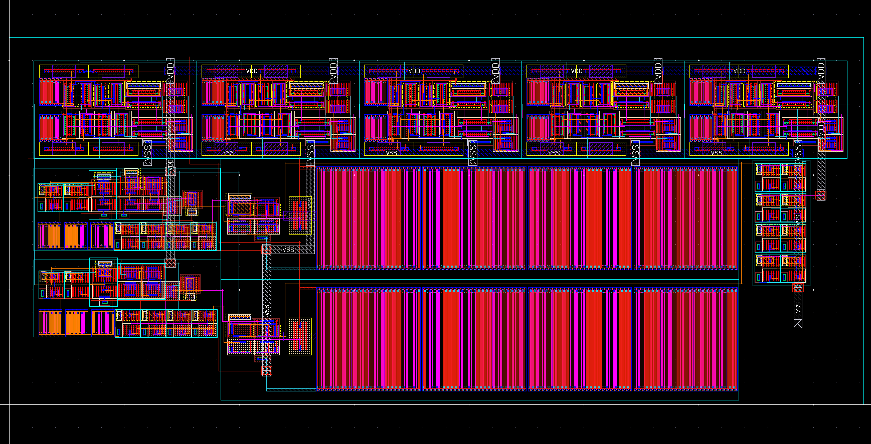 This project demonstrates a complete mixed-signal IC design flow, from circuit-level understanding to layout implementation and post-layout verification.
