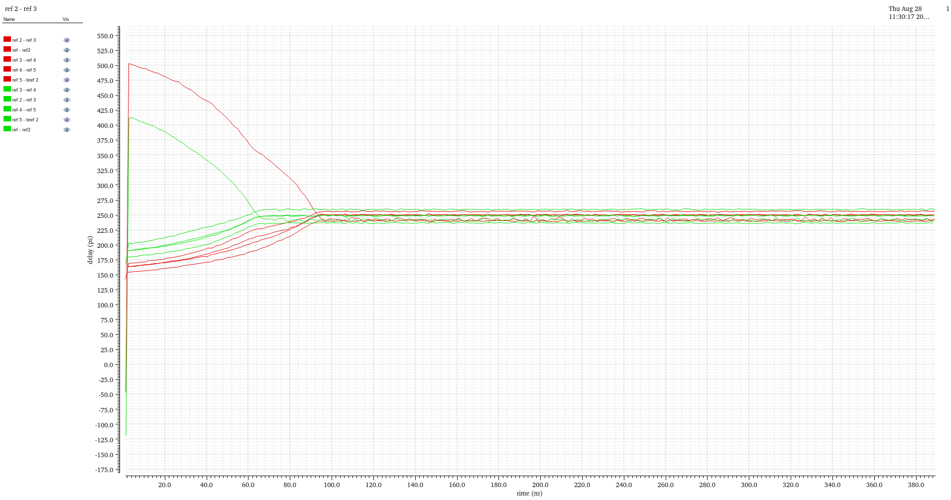 图 4.1:后仿波形结果,展示稳定的延迟行为
