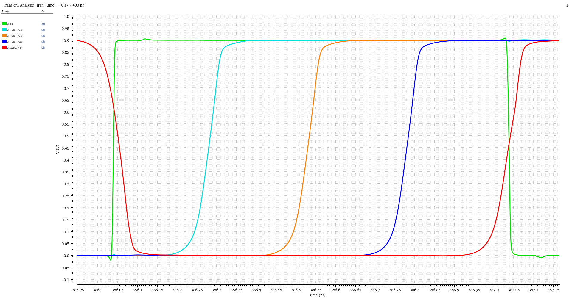 图 4.1:后仿波形结果,展示稳定的延迟行为